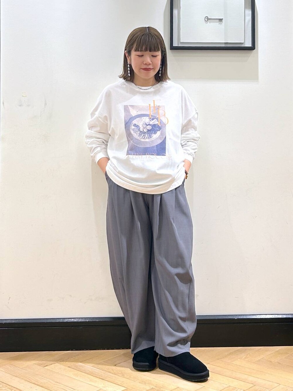人気のコラボTシャツ◎ プリントが可愛いのでカーディガンを羽織るスタイルもおすすめです! パンツはメンズライクなグレー! お仕事にも使えるアイテムです🩶 着ているアイテムはこの下の使用アイテムから見れますのでぜひご覧頂けると嬉しいです♡ ⇩⇩⇩