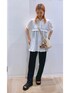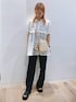 トップスのブラウスは透け感もあり暑い夏でも涼しく快適に着用いただけます。 裾が広がるシルエットのブラウスなのでパンツと合わせるコーデがおすすめです!