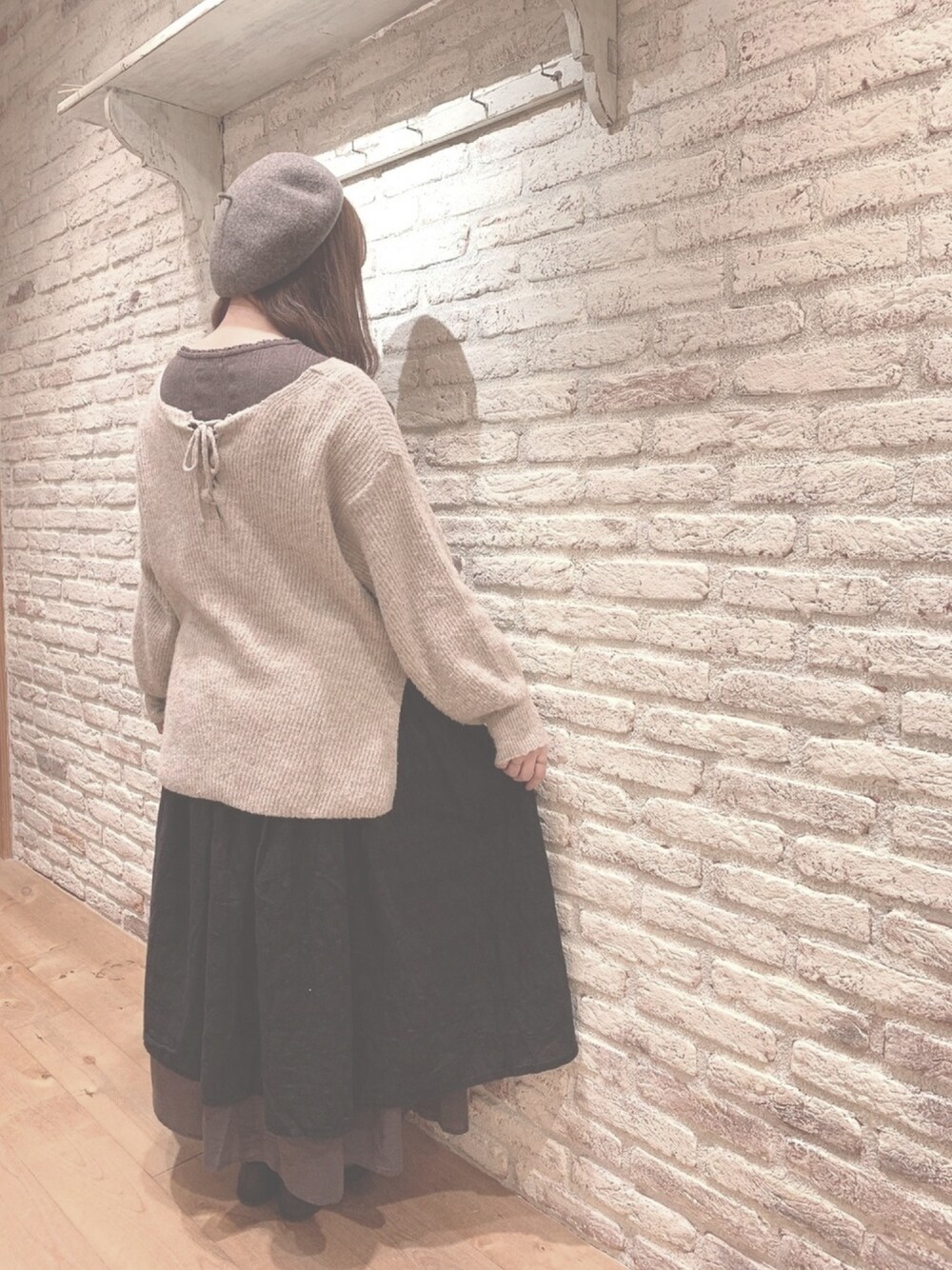 ベージュのニットでゆるっと…𓅫𓂅𓂅