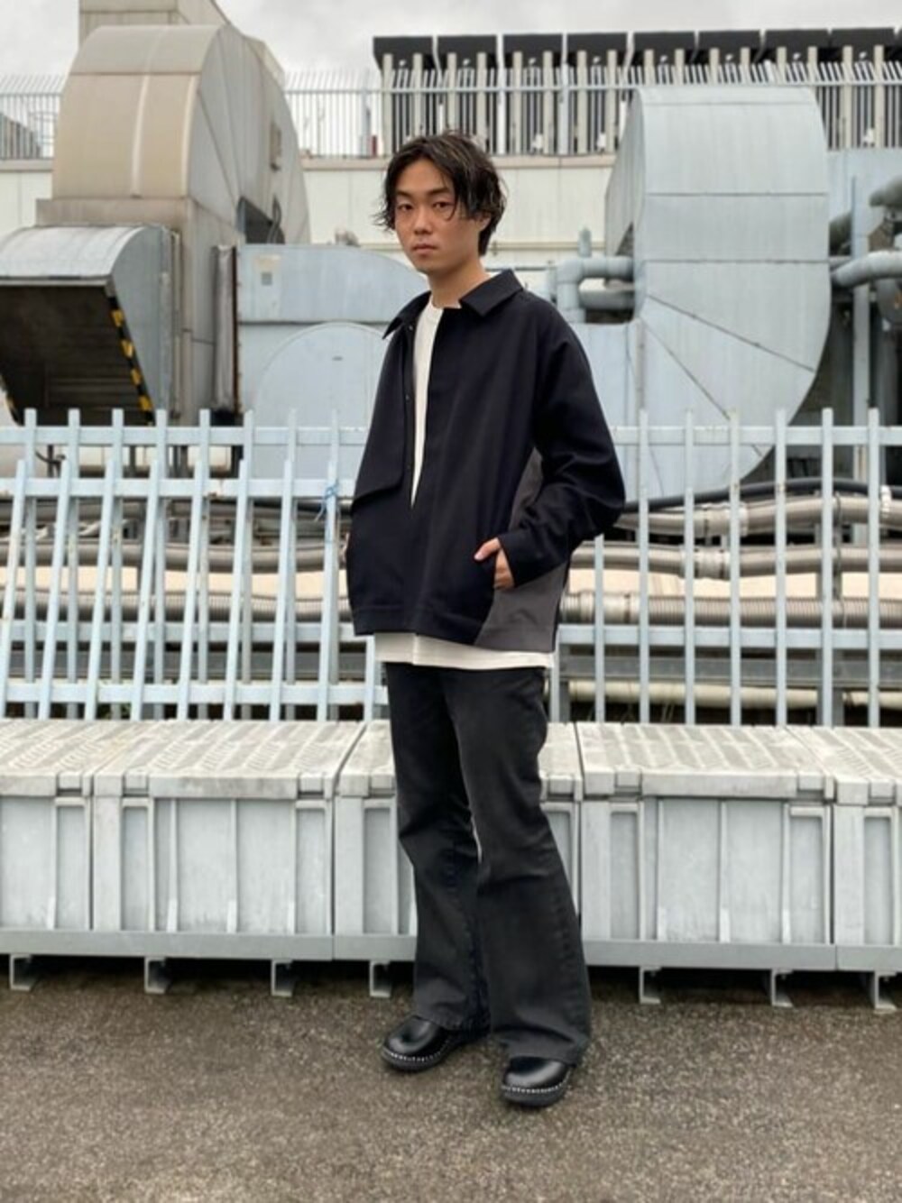 aplusyuto(CITY TOKYO)のブルゾン「【洗える/シワ防止】NEOジェネレーションジップアップブルゾン リラックスフィット/異素材切り替えデザイン」を使ったコーディネート