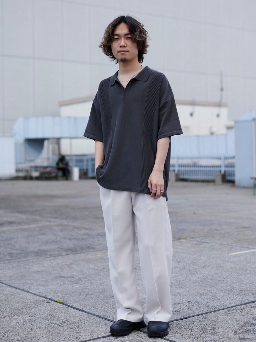 aplusyuto(CITY TOKYO)のポロシャツ「スキッパーリラックス半袖ニットポロシャツ」を使ったコーディネート