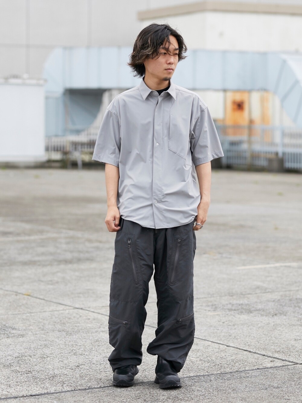 aplusyuto(CITY TOKYO)のシャツ/ブラウス「撥水スーパーストレッチハイゲージナイロンシャツ」を使ったコーディネート