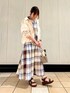ベージュ✖️ブラウンでまとめました。 落ち着いたカラーのチェックならオトナ女子にもセットアップで着やすいですね! まだまだ夜は肌寒いので軽アウターをお忘れなく♩