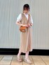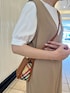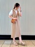 女子会こそレディに... ▶︎Vカットジャンパースカート 深いVカットで顔まわりがスッキリ見え小顔効果◎ バックスリットで抜け感も。 ▶︎パフスリーブカットソー 半袖Tシャツより女性らしさを演出。 高見えします! 《ファッションポイント》 シンプルに淡くまとめましたがパーマーチェックをあしらったバッグで全体的にグッと締まった印象に。 素肌に近い色のサンダルをチョイスする事で美肌&脚長効果◎