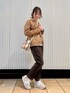 軽くて暖かい700フィルパワーダウンジャケットを主役にしたコーディネート。 ブラウンのチェックパンツを合わせる事で落ち着きのあるシーズンムードを演出しました。 足元はスニーカーで、お出かけにも通勤にも活躍する、大人カジュアルスタイルです。