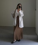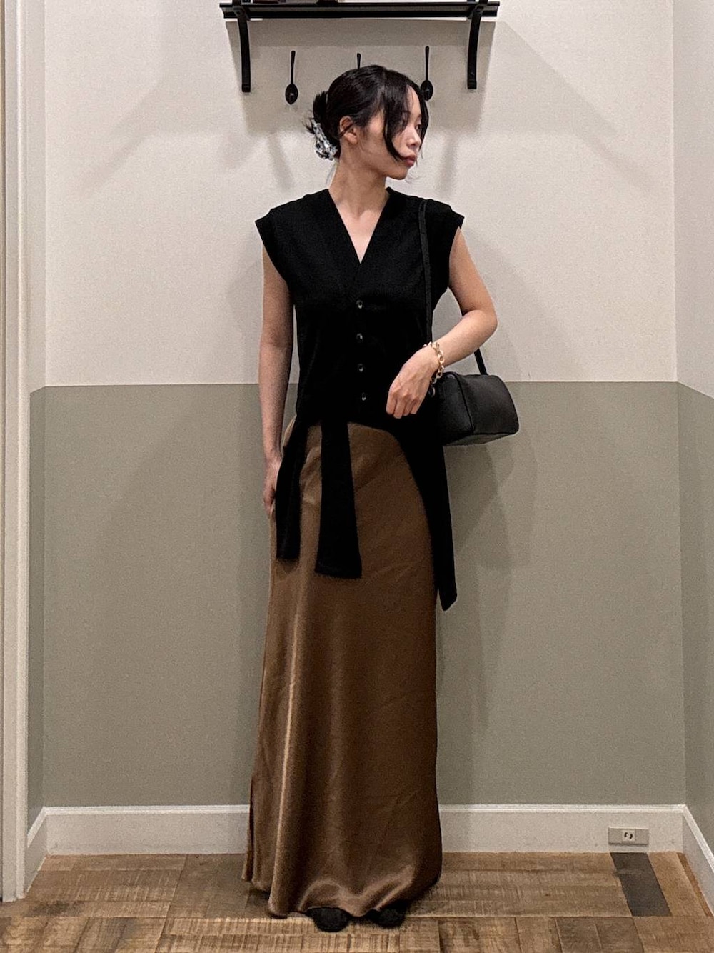 夏だってダークトーンを楽しみたいっ♡ つるっと触り心地の良いお姉さんっぽいスカートは、 カジュアルなコーデもフォーマルなコーデも どんな時でも自分の気分に馴染む救世主のような存在です! あえてダークトーンを合わせることで、 一気に大人っぽコーデになりますよね☺️ ペチコートを履くのが面倒な方は、 抜け感と称して腰にトップスを巻けば 楽チン&可愛いが簡単に叶っちゃいます💫 カジュアルに着たい時は、 トップス▶️デニムなどルーズなアイテムにスニーカー合わせも可愛い🎶 スカート▶️Tシャツ一枚合わせるだけでガラッと印象が変わるのでおすすめです!