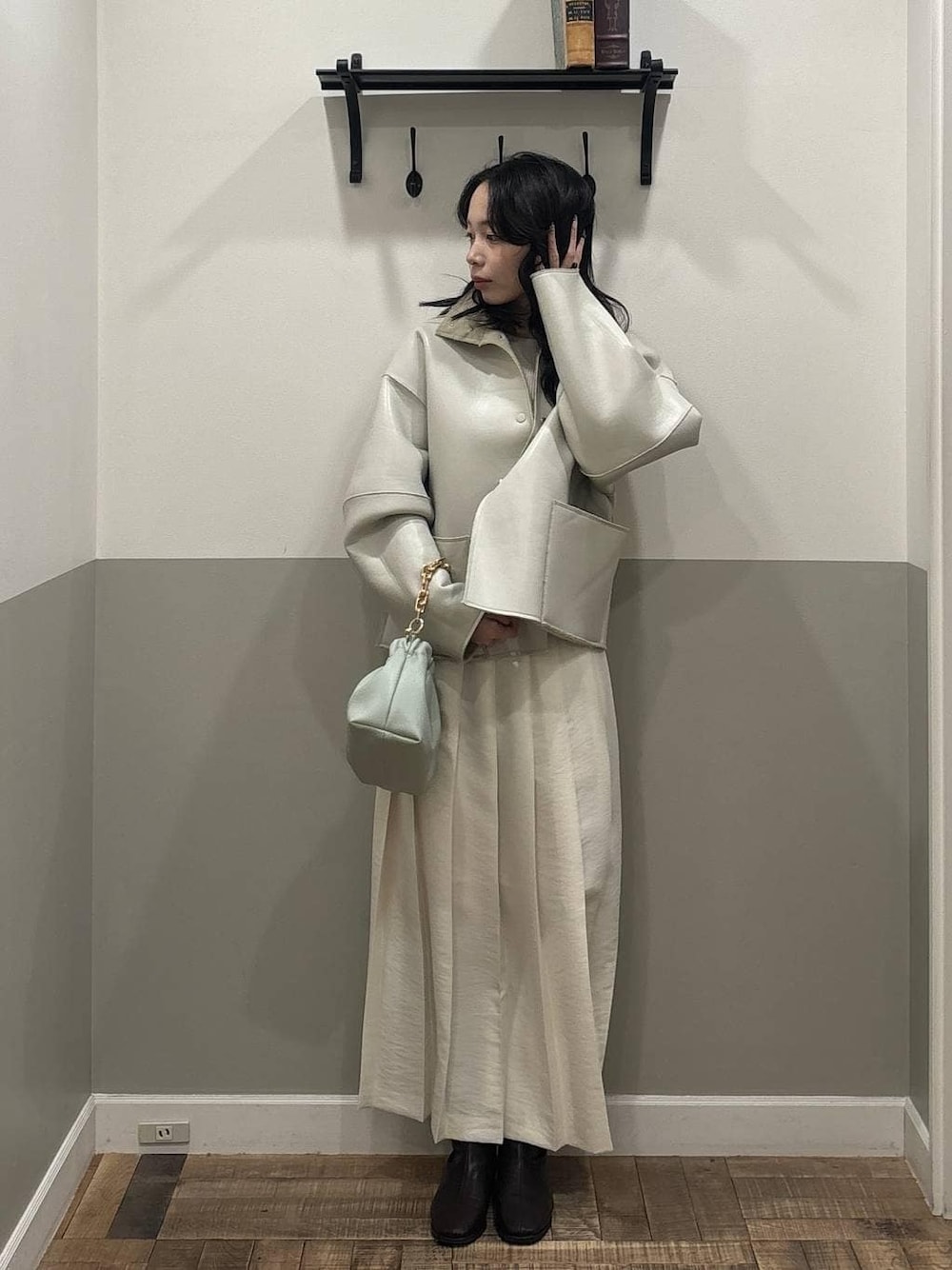 白は着膨れする?🙂↔️NoNo!🙂↔️ホワイトベージュで抜け感ホワイトコーデ🤍✨ ▫️ムートンリバーブルゾン 裏と表で季節感を自分で操れるところが長く着用していただけるポイント🤍 大きなポケットが裏表合わせて4つ同じ大きさでついているので雪が降っている時などは 内側にスマホを入れれば濡れないところが推しポイント✨ ▫️シルクウールライクプリーツスカート 名の通り、シルクとウールが入っていないのにめちゃくちゃ高見えするアイテムです🙂↕️ 長めに履きたい方はMを、短めにスタイリッシュに見せたい方はSを。ウエスト周りのサイズ感がだいぶ変わるので迷ったらMをどうぞ✨