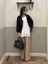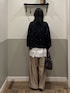 ドットのアウターの下にトレンドのレースキャミを仕込み、上半身は可愛くまとめてみました♡ 艶感のあるパンツを合わせることで、ガーリーな雰囲気を抑えつつ大人でもドットやレースを着やすく組みました! これからのシーズンは着込むと暑苦しく見えてしまいがちなので、足元はスッキリ見せるのがバランス取れて良いです✨