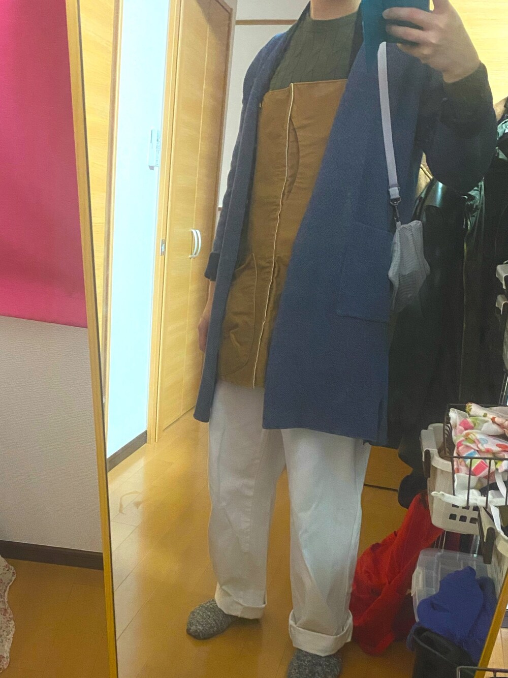 ほどほどに暖がとれる程度の服装。 suoloのエプロンはポケットが大きいし便利。
