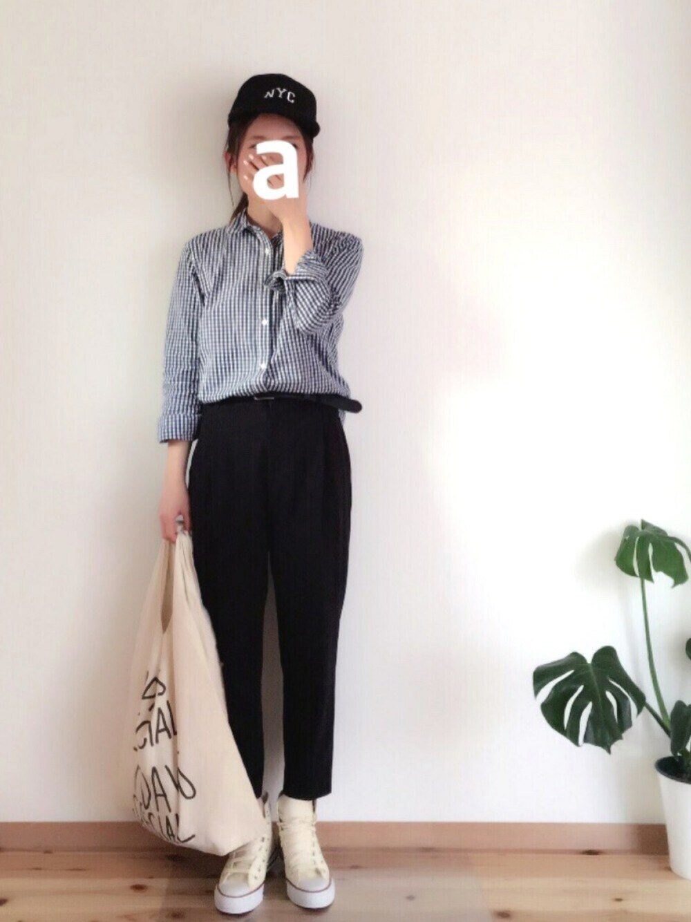 minimalist_aponのトップス「(GU)ウォッシュブロードシャツ(ギンガム・長袖)」を使ったコーディネート