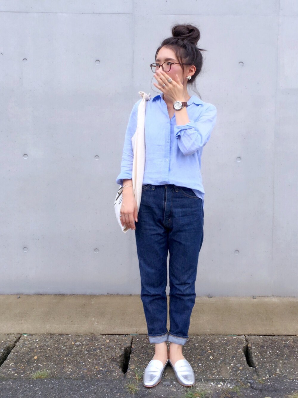 minimalist_aponのデニムパンツ「ハイウエストスリムパンツ」を使ったコーディネート