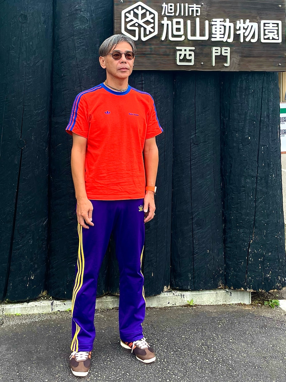 永年勤続休暇で北海道へ。今回の旅はadidasづくしです。初日はadidas wales bonnerのTシャツに00sレイカーズカラーのトラックパンツにadidas wales bonnerのスニーカーで。OldとNew adidasの組合せ。同じく00sに流行ったエルメスのチョーカーを合わせてみました。
