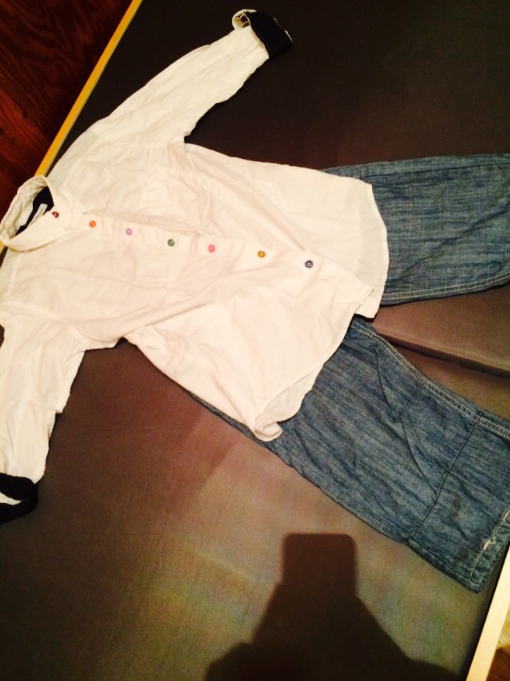 白シャツだけじゃ物足りないボトムスのときにカラフルなボタンがあるのでつかえます!