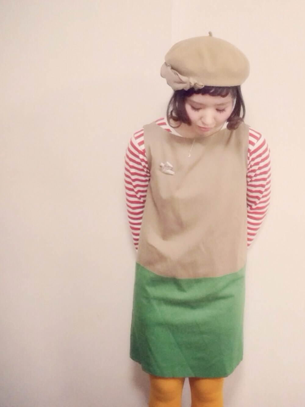 あっぺのハンチング/ベレー帽「なんか飾りついたベージュのベレー帽」を使ったコーディネート