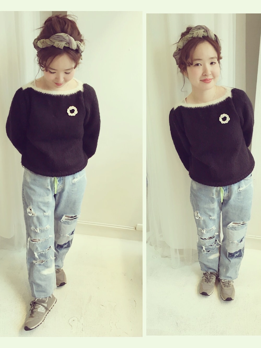 デニム欲しいなぁ〜〜と思ってたら久しぶりに行ったfloorで 可愛いデニムがザックザック。 いろいろ試着して迷ったけどこのデニムに決定◎そしてお得意の『着て帰っていいですか?』をまたやってしまった。笑 この日ベルトを持っていなかった私に心優しいたかこさんが可愛い紐をくれて事無きを得ることができた。しかも店内30パーセントオフとか、、、さいっっこう♡ その後に行ったフェムローブでもニューバランスのスニーカーゲット!久しぶりにグレー買い直した。そして、はい!お決まりの『はいて帰っていいですか?』を発揮!!! 気付いたら朝家出た時と下半身の服が総入れ替えしてた。