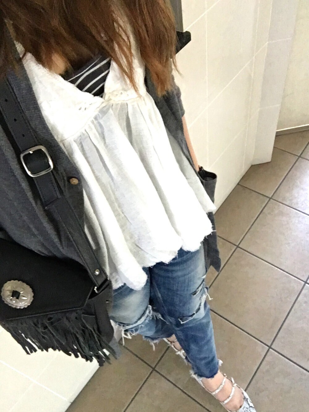 いいね、セーブありがとうございます(^^) 新しく買ったキャミが着たくて組んだコーデ💕 ホワイトにしたから甘すぎないように、 クラッシュデニム合わせて足元はパイソン柄に✨ ガーデは必需品です😁✌