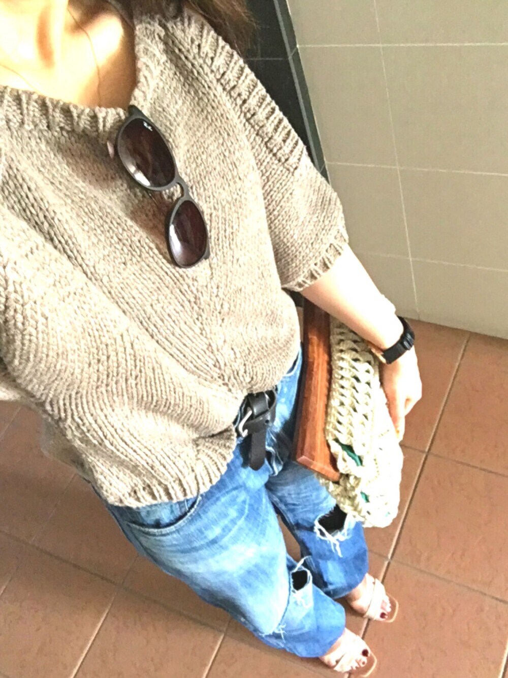 久しぶりにupします♪ 新しく購入したサンダルに合わせてコーデ😊 お気に入りのニットと相性良かった♡ ベージュ系って大人っぽくなるから好きです♡