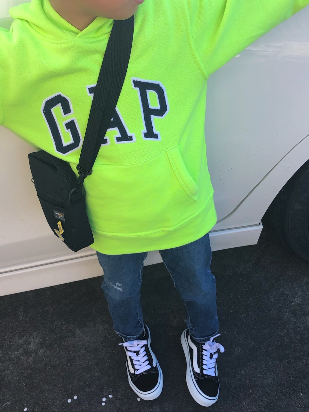 この色のパーカーは大人じゃ着れないと思って子供に着せちゃいました。笑笑