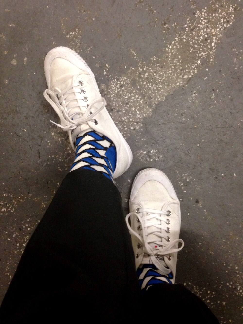 ブルー系のソックス/靴下を着用したレディースの春コーディネートの1枚目の写真