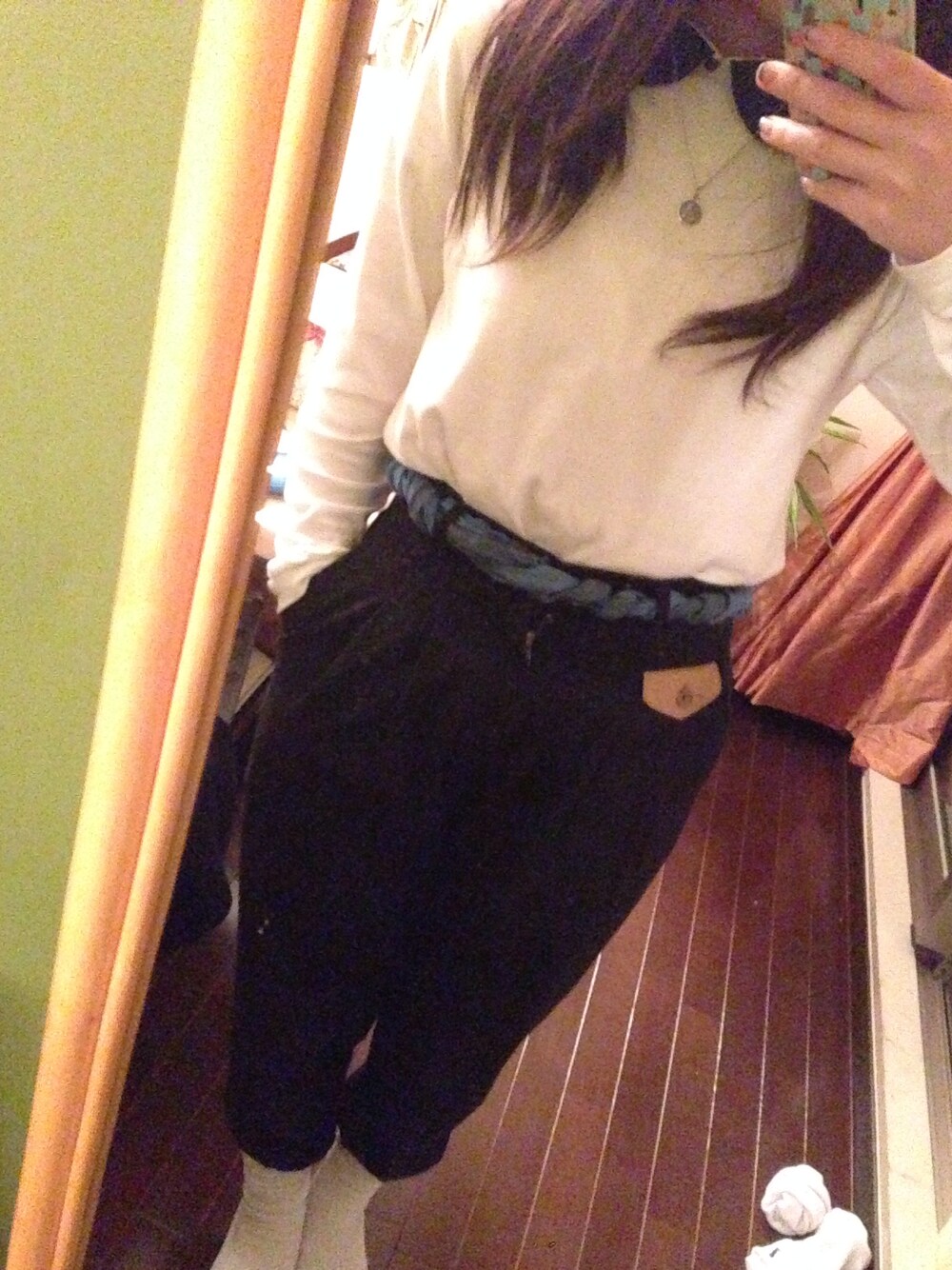 ズボンは原宿のOTOEという古着屋で購入!とってもオシャレなお店なのでオススメです✨🚶 ベルトはスカーフをくるくるして使ってみました笑