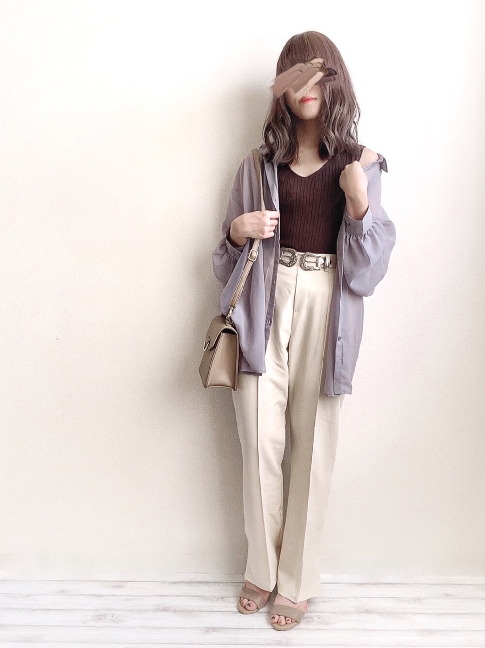 いつもなら 中のタンクトップは白にするんだけど、 あえて暗い色にしてみた☺️ 大人っぽさ出て良い感じ😊 みてくださって ありがとうございます✨