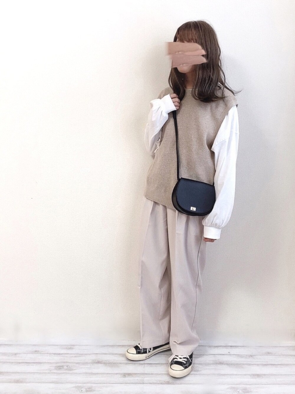 tops:pairpair / M vest:UNIQLO / S pants:GRL / M (タグ付けSしか無かったけど、私が履いてるのはMサイズです)