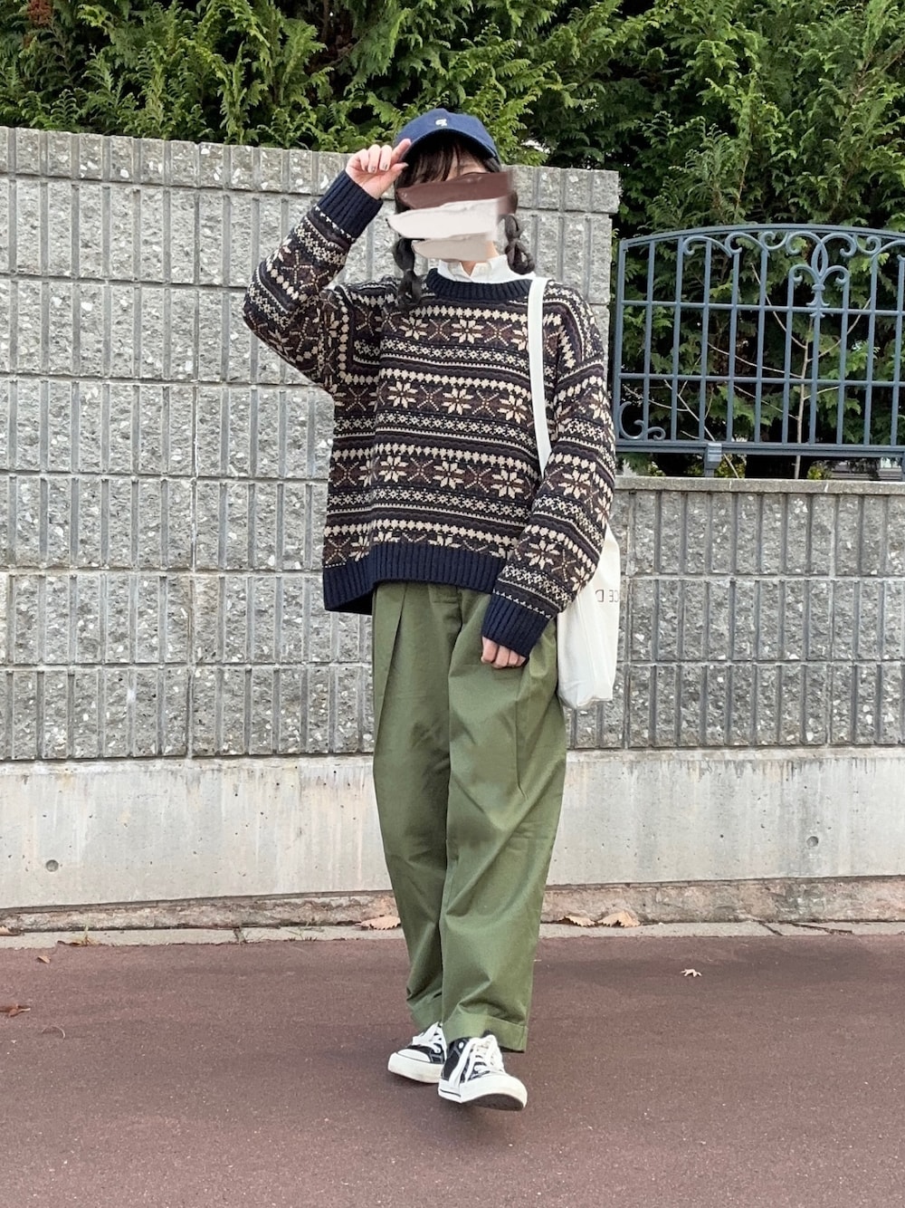 GUのニットに一目惚れ! ゆったり着たかったから Lサイズ( * ॑˘ ॑* ) シャツとカーキのパンツと合わせて メンズライク𓈒 𓂂𓏸