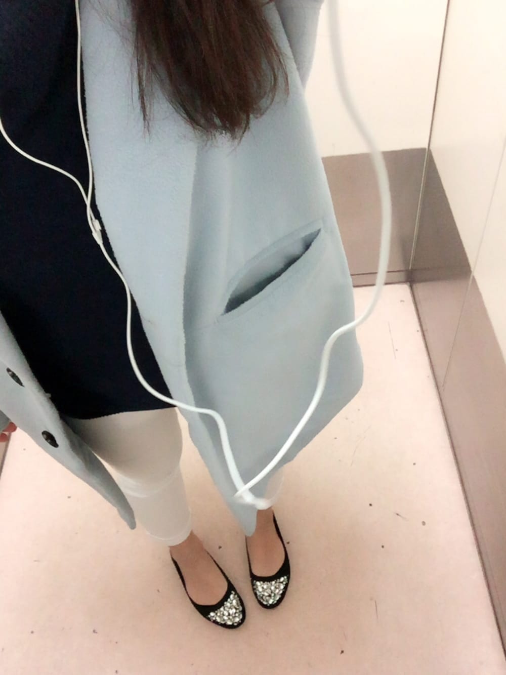 この紺のニット、去年のセールで安くなってたから買ったんだけどワンピースにするには短いしニットにしたら長いし〜って感じ💭 バイトもあるし下にズボン履いてシンプルにまとめた◎ もっと着まわし方考えないと、、、