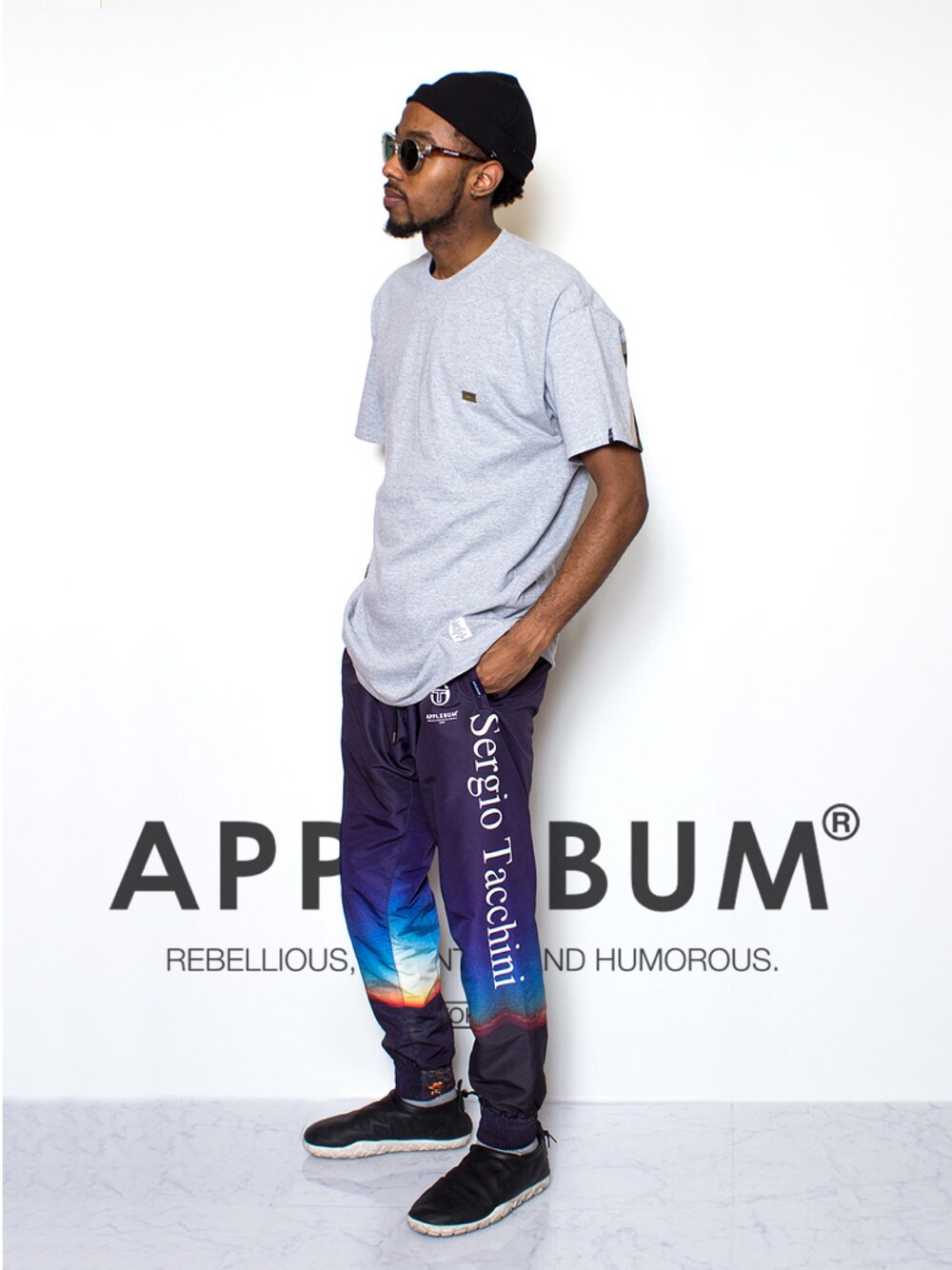「SERGIO TACCHINIコラボレーション」 大きな存在感を放つトラックパンツを使用したコーディネート。 裏地は総メッシュ構造で通気性がよく快適に着用いただけます。