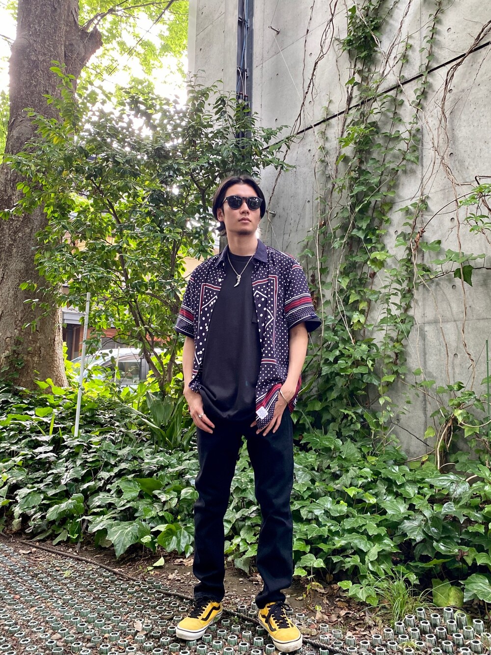 キレイめなスタイリングにも落とし込みやすいパターンシャツ🙆🏽♂️ 前開きで着ることでよりラフな印象になります👍🏽