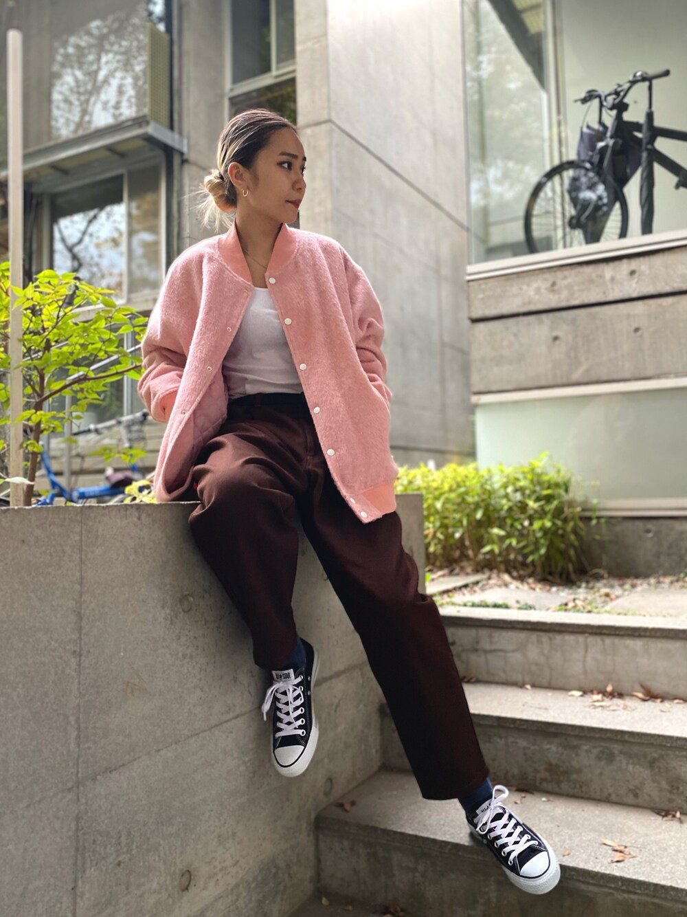 着心地と触り心地が抜群のスタジャンは差し色になるピンクをチョイス🌸