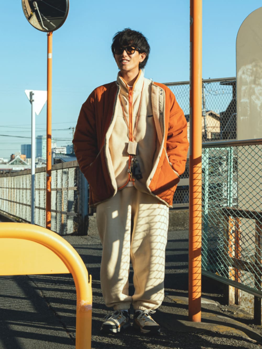 ベージュとオレンジで合わせたコーディネート🍊 着心地もシルエットも言うことなしのお気に入り😎