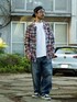 この季節大活躍のゆるっと羽織れるシャツジャケットに、太めのデニムで合わせてみました🚶