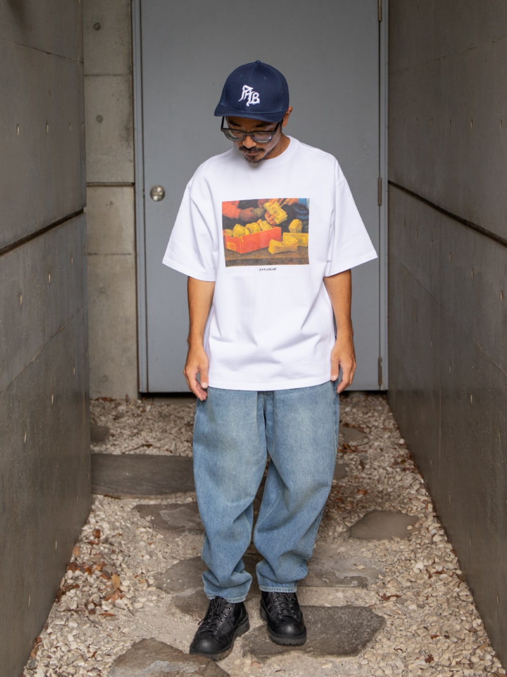 ストリートを映し出す、カルチャーとアートが交差するAPPLEBUMらしいアイテムを使った休日コーデです。