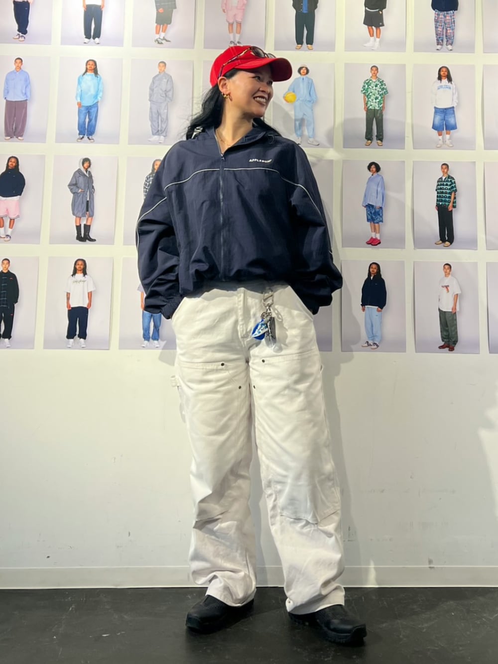 マットな質感のナイロン生地で仕立てたトラックジャケット。 リフレクターのパイピングがアクセントとなり、シンプルながらも個性を引き立てます。 身幅と肩幅にゆとりを持たせたシルエットで、裾にはドローコードが付いており、トレンド感のあるスタイリングにぴったりな一枚です。 カジュアルでありながら洗練された印象を与えてくれるアイテムです。 同素材の「Nylon Track Pants」 、「Nylon Bucket Hat」とセットアップで着用いただけます。