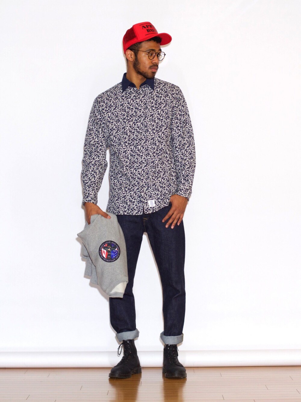 今回は2016年s/sの新作のシャツとクルーネックスウェットです!! 新作の落ち着いた色の花柄シャツをカッチリ着てデニムをロールアップしブーツを履いてアクセントに赤いキャップを被ってみました! 肌寒いようなら、私がお気に入りで手に持ってる、クルーネックスウェットをシャツの上から着たら普段とは違うスタイルを楽しめますよ(^^) 着方を少し変えるだけで、カジュアルやストリートなどのファッションを楽しめます♪ みなさんも、是非!