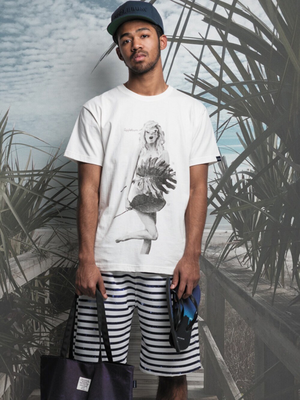 今回は新品のTシャツとトートバックとキャップです。 夏感たっぷりなコーディネートにしてみました! BBQだったりアウトレジャーなどにぴったりな感じです♪ Tシャツは、ブランド名の由来ともなったA Tribe Called Questの名曲「Bonita Applebum」にインスパイアされたTシャツ、2016年版。 38-24-37の数字はこの曲で歌われる理想の女性(=Bonita Applebum)のスリーサイズを表しています。 トートバックは、NYのビル群のシルエットと美しい空のグラデーションをトートバッグに落とし込みました。 静寂でどこか落ち着いた雰囲気のあるデザインとなっております。 是非皆さんにも、オススメです♪