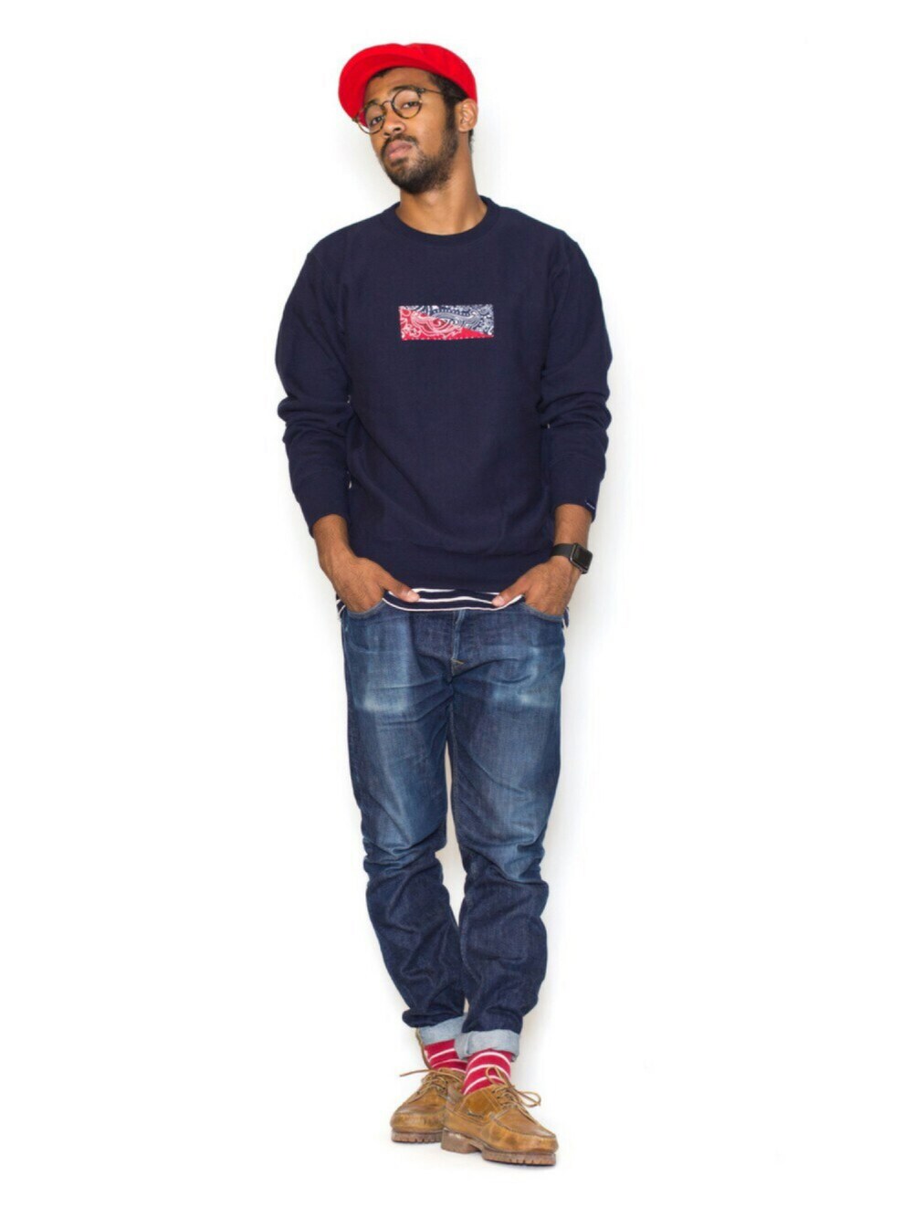 こんばんは!!! 最近は、朝と夜は寒いですね(>_<) 気温の変化に体調を崩さないようにしてくださいね🌝 今回は、2016awの新作のスウェットです!! 赤」と「青」のバンダナをボックス型に組み合わせ胸に付け、裏起毛した12ozの生地を使用した少しタイトなクルースウェットになります!!! APPLEBUMのデニムをずっと履いて、良い感じに色落ちしてきました♪ みなさんも是非🍎👍🏾