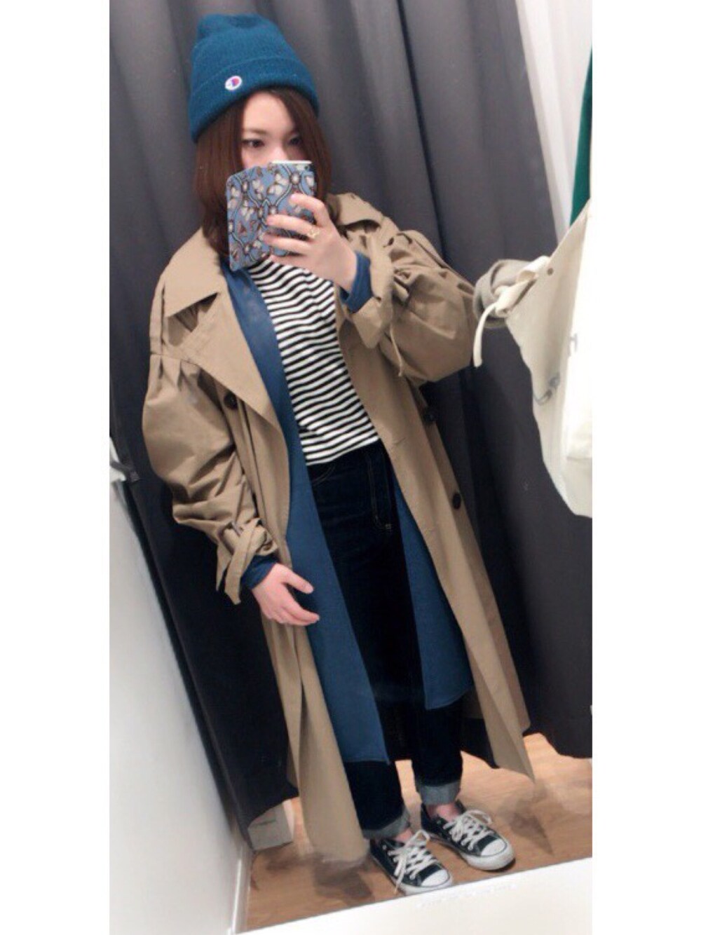 トレンチコートコーデ。 青で統一。寒すぎたー!⛄️