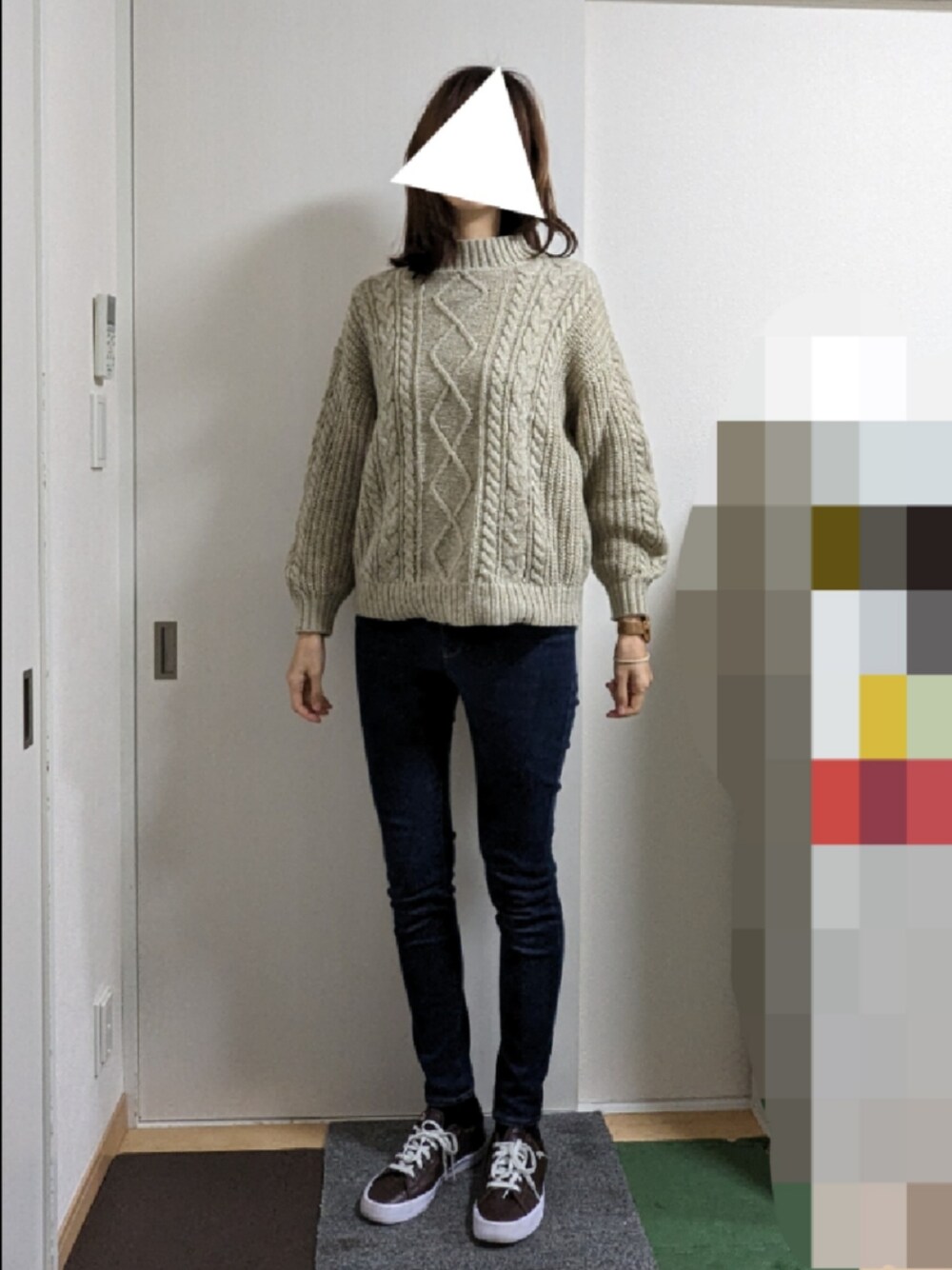 りんごのニット/セーター「◆【体型カバー】きれいめカジュアル メランジ ケーブルニット」を使ったコーディネート