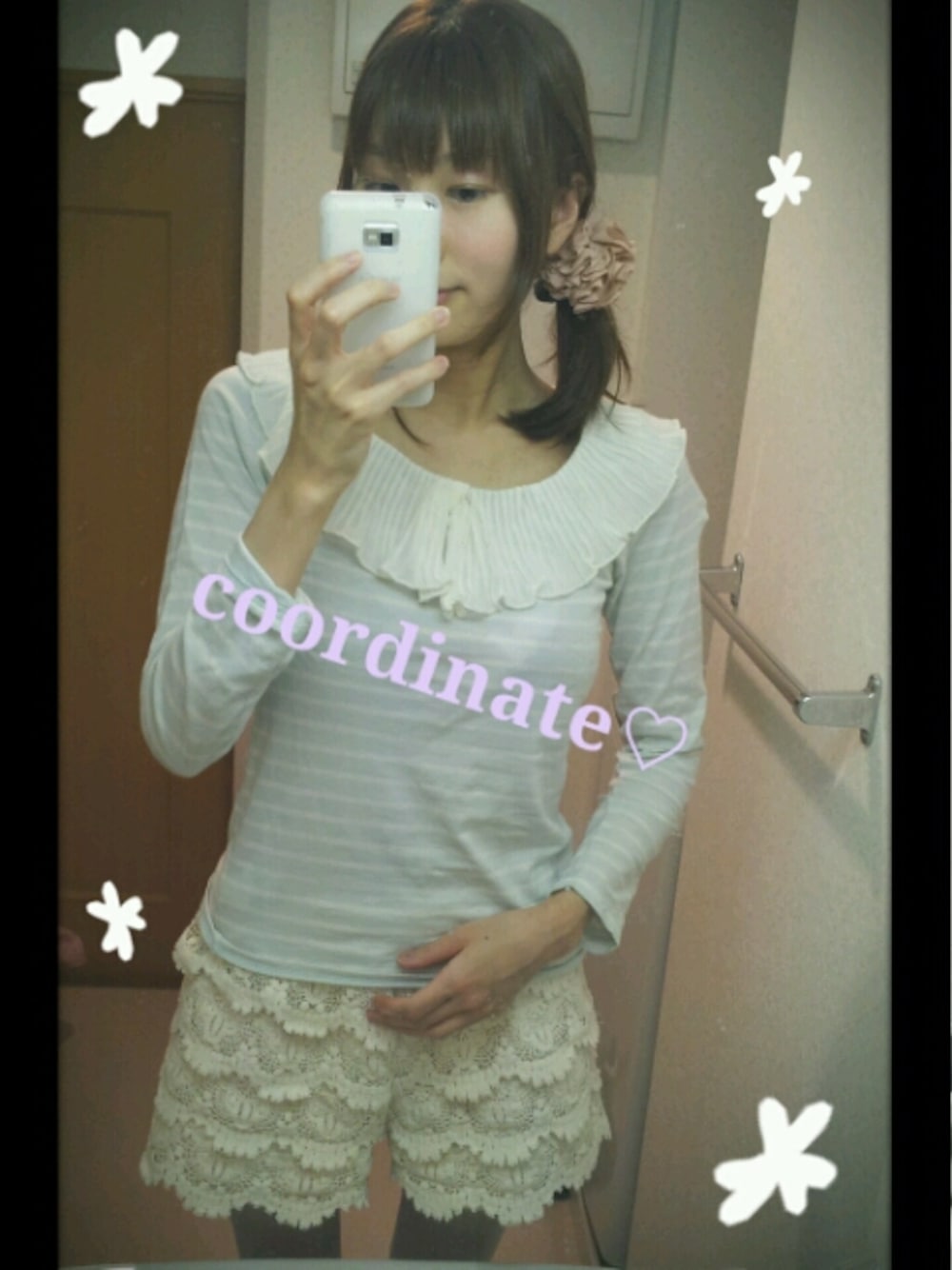 ♡ボーダートップス→earth music & ecology ♡フリルショーパン→g.u ♡シュシュ→スリーコインズ earthのボーダーは、パステルミントグリーン色が可愛い♪ ジーユーのこのパンツは、ピンクもあって迷ったけど白購入したのです~♪ でも後からになってピンクがやっぱり欲しくなったのですが、その時には新商品に入れ替わっており、時すでに遅し(T_T)うう 特にジーユーは商品の入れ替わりが早いですよね~; 気に入った形は、色ち買いすべきだと思いました~(゜.゜) シュシュは300円ショップ♪ シュシュはほとんどスリーコインズでしか買いません♪300円なのに可愛いのが沢山で迷っちゃいますよね~\(^o^)/