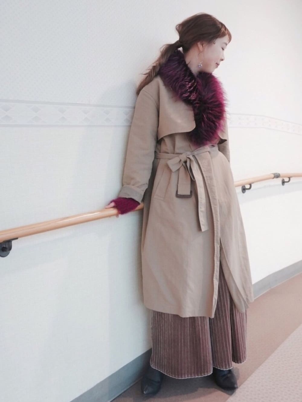 kumiosadaのトレンチコート「ぱっと羽織るだけでサマになる、簡単ロングガウントレンチコート」を使ったコーディネート