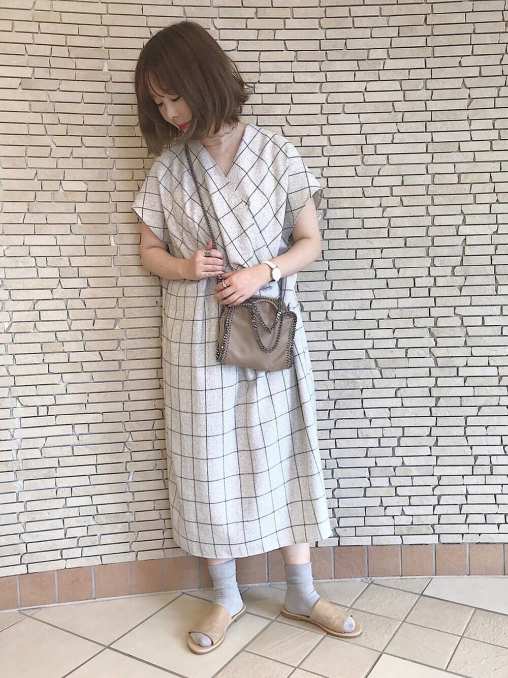 連日暑くて🌈🌈 涼しくて楽チンなワンピース立高め👗 お店は冷房がキツい‥ サンダルには素足より ソックス派です👡🧦✨ wave chokerはハンドメイド🌿 importのバッグ 詳細はわたしのInstagramまで🌿