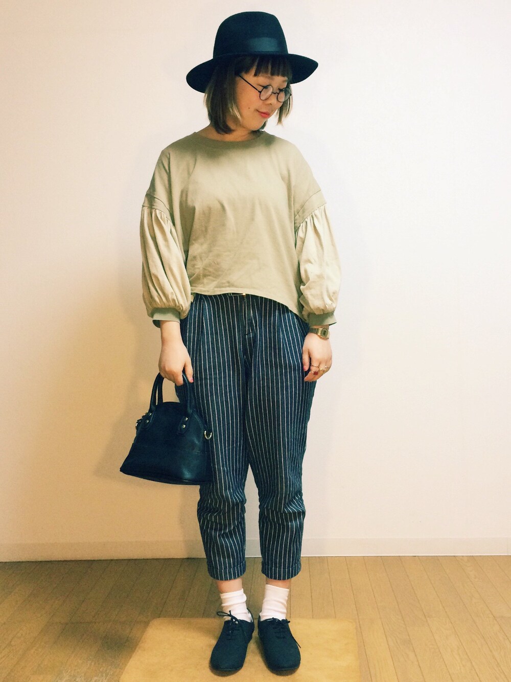 ストライプパンツはわかりにくいけどネイビー💕 小物はブラックで統一しました(^ν^) シューズは五百円ゲット💕 トップスは九分袖なので時計やブレスレットがよくみえてお気に入りです✨⌚️✨💕 電球変えたら夜でも写りが明るくなりました✨ 明日はバイトで積み込みです! 頑張るぞ!! あ! クリスマスケーキ予約しなきゃ🎂🌲💕💫