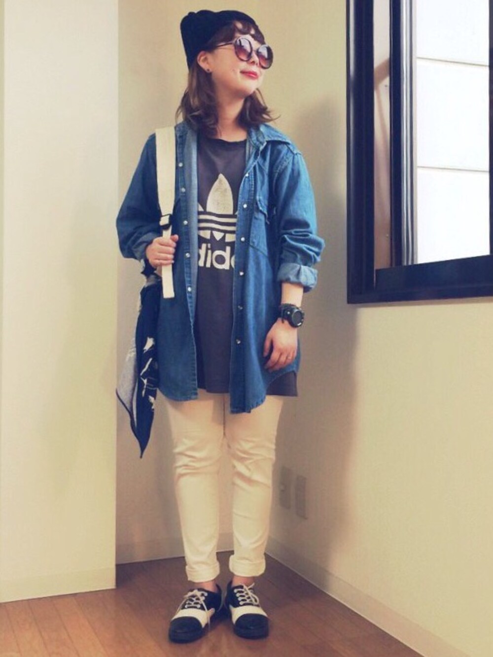 men'sのadidasとデニムシャツは古着です✌️ インスタグラムも、 気ままにやってます*\(^o^)/*