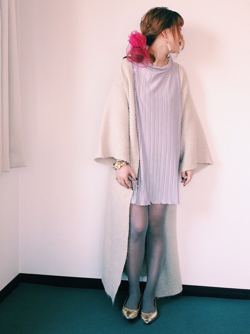🎀 🎀 🎀 🎀 🎀 🎀 🎀 🎀 メリーのボトルネックを ワンピースとして着回しました⌒👗 ロングカーディガンと タイツを同系色にした事で 縦のラインが引き立ちます⌒💜 一つ前のコーデと変えて アクセサリーはゴールド系⌒⚜️ 🎀 🎀 🎀 🎀 🎀 🎀 🎀 🎀