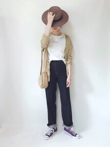 merry jennyの 素敵なワイドパンツが届きました👖 春夏で活躍すると思って このくらい淡い色のベージュ探してた◎ ウエストはゴム 太くてしっかりしたゴムが入ってる感じ◎ 夏みたいな晴天で🌈 白Tに麦わら◎シンプルな着こなし◎ ワイドパンツは ふわーと風通しも良くて涼しい🎐🙆 ピアスは試作品◎ Instagram ✔︎Check✔︎