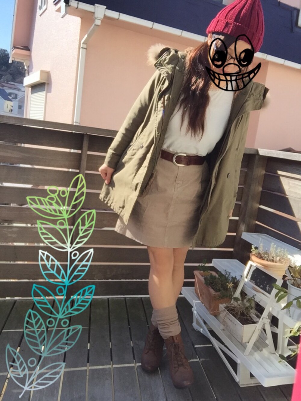 えへへ♡ やりたかったcoen code♡ お天気が良いのでお庭で撮影! モッズコートもスカートも アウトレットでお買い得でした♡ カットソーは色に悩んだ! 黒も欲しかった! 白も可愛かったけど、 黒も買えば良かった!! 実は大学卒業式のとき 袴に合わせて買ったブーツ♡笑