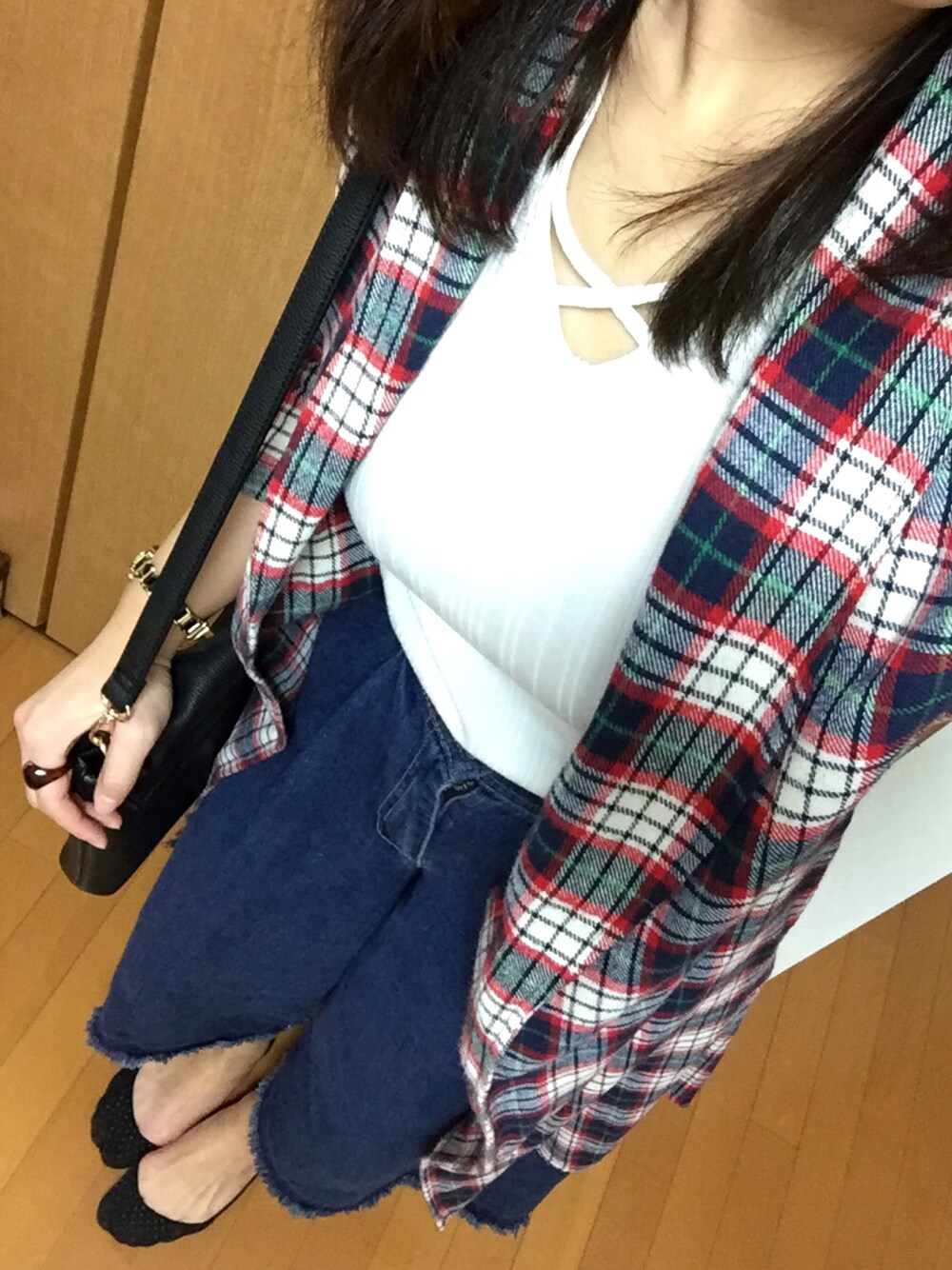 リンゴのピーコート「チェックガウン」を使ったコーディネート
