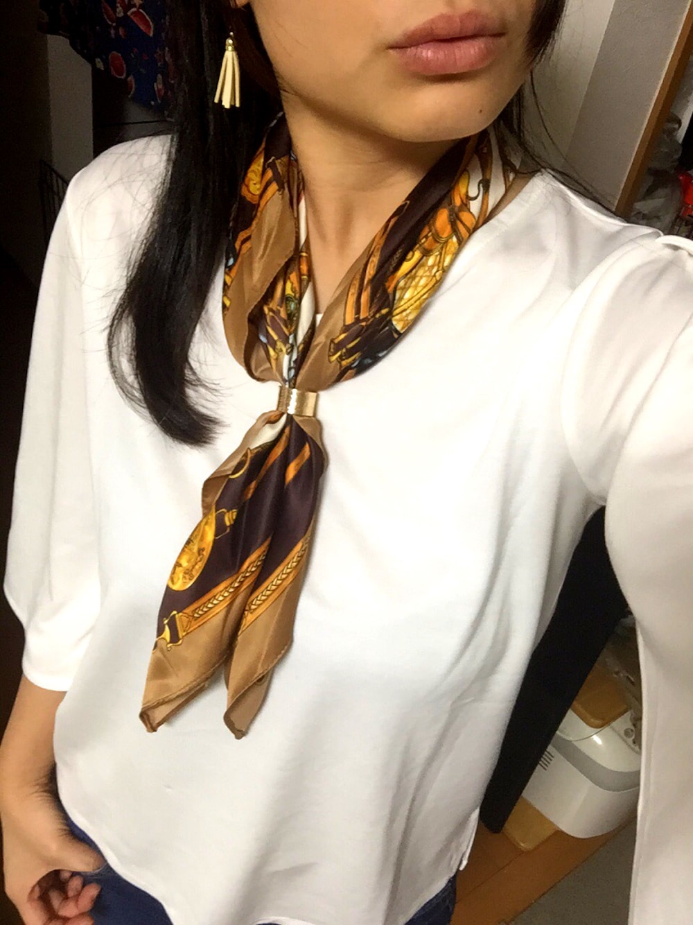 しまむらの300円スカーフ なかなかかわいい( ºΔº )♡ もっと買ってもよかったな〜(⁎⁍̴̆Ɛ⁍̴̆⁎)